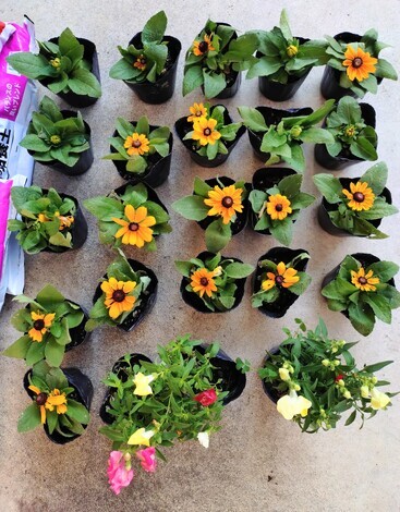 とりあえず花苗24本整列です一ちまちま1日中並べていますネ一¥1600円出費.困る困る・・・