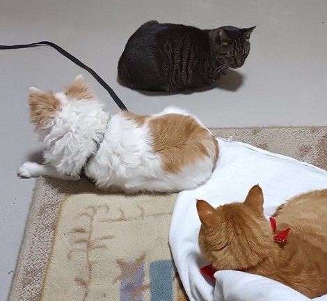 8年前、チワワを飼っている所に野良猫を家族として迎えました。この猫はいろいろな遊び道具を試したのですがすぐに飽きるので手乗りの文鳥を飼いました。犬も猫も去勢しているので異性には興味を示しませんが文鳥は去勢出来ないので繁殖行動をして伴侶を求めます。そこでもう一匹文鳥を飼いました。無事カップルになって鳥かごの上で仲良く楽しく暮らしています。