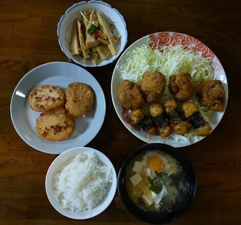 鶏のから揚げ、さつま揚げ、タケノコの煮物などを食べました