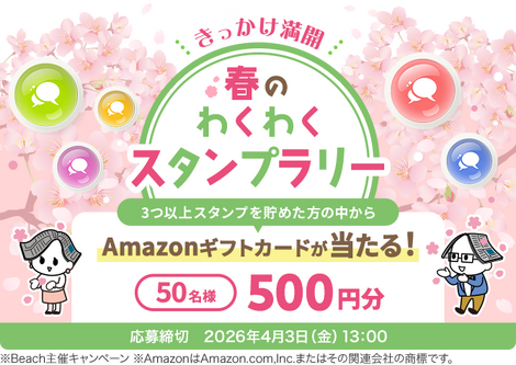 スタンプを3つ以上集めた方の中から、50名様にAmazonギフトカード(500円分)をプレゼント!