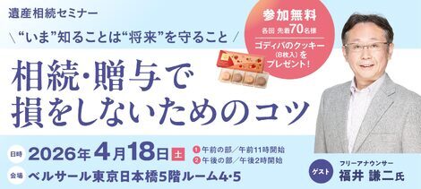 4/18(土)にベルサール東京日本橋で「遺産相続セミナー」が開催されます。