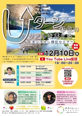 本セミナーでは、大田原市とさくら市の先輩移住者2名にご出演いただき、Uターン移住のメリット・不安・リアルな暮らしを整理し、「地元に戻る」をより想像しやすくします♪