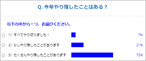 まずは、ワンクリックアンケートで、今年やろうと思い描いていたことができたかどうかを教えてくださいね。