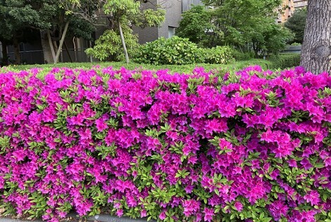 大きな団地があり、整備された花壇に