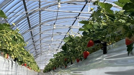 ハウスの中の二重ビニールあげてもらいます。