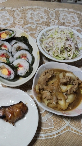 昨日 娘たちが帰った後 たくさんのご飯が残り 今日はお寿司を作りました。