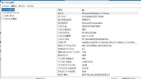 ③ すると こんな画面が出ます「システム情報」