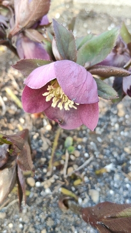 我が家のクリスマスローズ、私に枯れかかっている葉、取られたのに、花咲いていました。