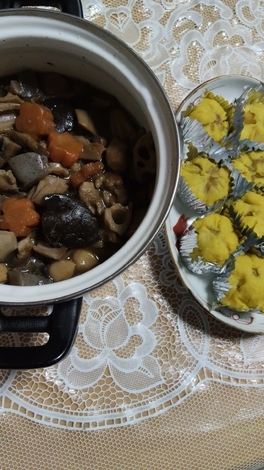 今日は とりあえず、筑前煮と栗きんとん作りました。