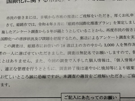 私にもアンケートが来ていた 19日までに投函しなければ。