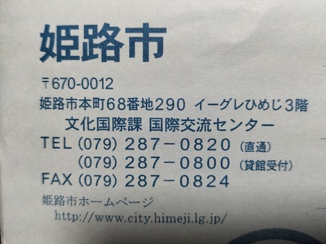 それがね 姫路市の文化国際課からです 聞いたこともない担当から。