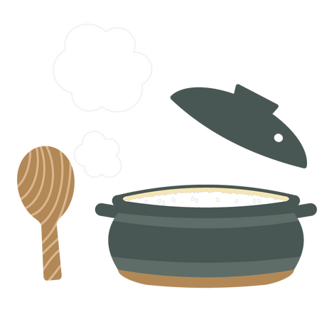 研いだ米を30分 浸して、お米に合わせた水分量を入れ、土鍋が沸騰したら弱火で12分! その後、そのまま 12分 蒸らして出来上がりです。