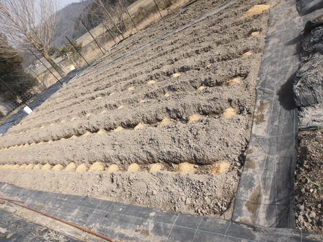 昨日ジャガイモを植えた所です