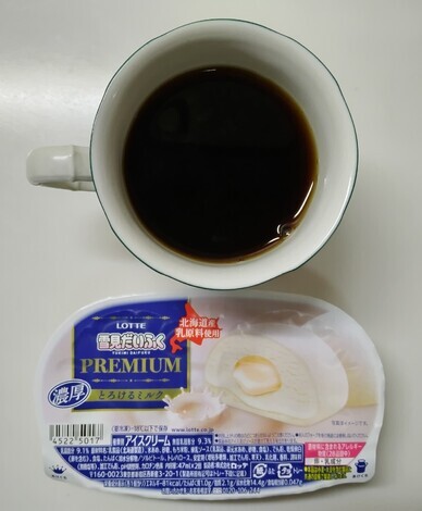 コーヒーと一緒に雪見だいふくを食べました