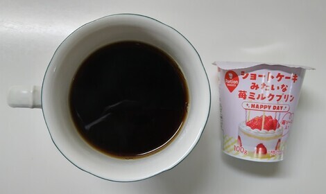 コーヒーと一緒に苺ミルクプリンを食べました