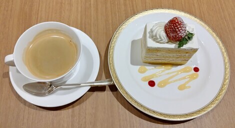 コーヒーと一緒にイチゴショートケーキを食べました