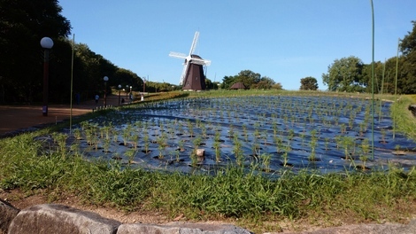 風車の丘、◯スモス、もう秋なんですね。綺麗に咲くといいですね。10月中旬が見頃予想、待ちどうしいですね。