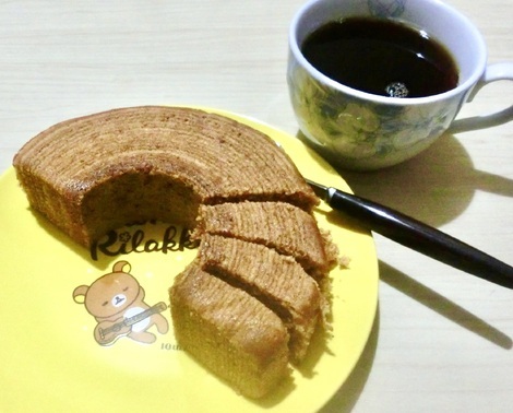 コーヒー味のバームクーヘンを食べながらコーヒーを飲みました。