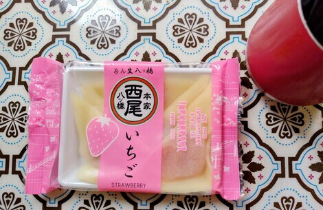 今日も旅先で購入した生八ツ橋 いちごを食べました。