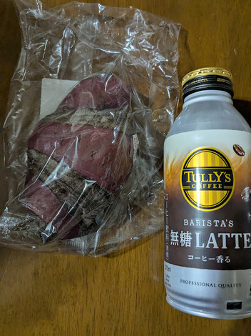 ●今日はタリーズの無糖ラテと一緒にコンビニスイーツでおやつタイム。甘いものには無糖のラテでしょ。仕事の合間にちょっと一息つけてしあわせー(*^-^*)