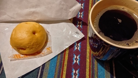●今日のランチはブラックコーヒーとたまごサンドでした!たまごたっぷりでおいしい!みんなは今日、何食べたのかな?