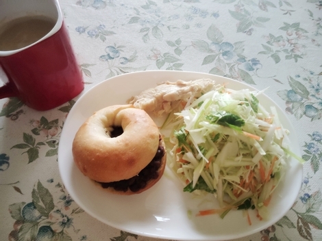 あんこサンド、サラダ、サラダチキン