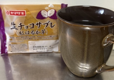 ホットコーヒーと生チョコサブレ紅はるか芋