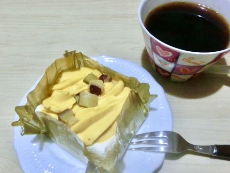 サツマイモのケーキを食べながらコーヒーを飲みました。