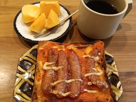 今朝はトマトソース&ウインナーのジューシーなトーストにしました(⁠^⁠^⁠)焼き立て最高❤️