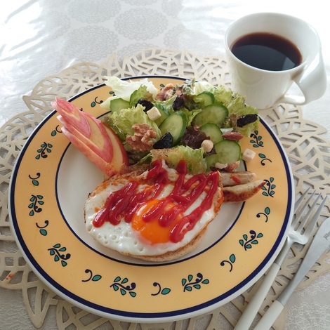 ●今日のランチはブラックコーヒーとたまごサンドでした!たまごたっぷりでおいしい!みんなは今日、何食べたのかな?
