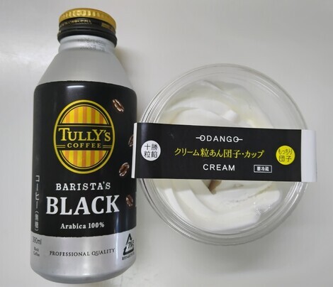 ブラックと一緒にクリーム粒あん団子を食べました