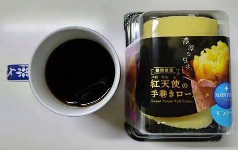 コーヒーと一緒にサツマイモのロールケーキを食べました