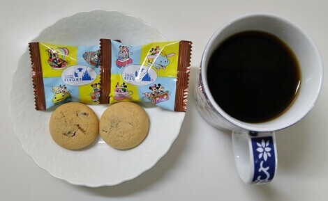 コーヒーと一緒にチョコチップクッキーを食べました