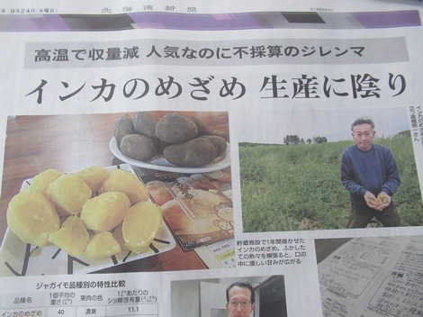 ■気になった新聞記事:インカのめざめ 生産に陰り