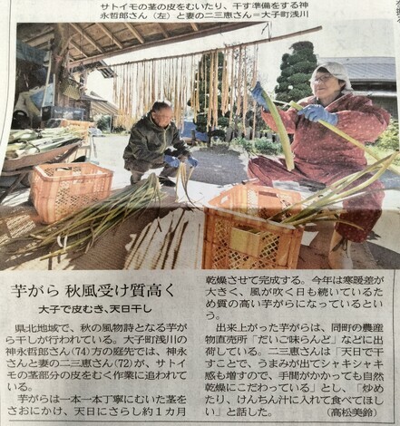 ■話し合った「ふるさとの宝の魅力」や「ふるさとの宝を守る方法」:干し芋や干し柿しかり、やわらかな日差しと寒風に晒された美味しさ。これからの時期は凍みこんにゃくや凍み餅もですが、あまり子や孫は…って、自分らも子どもの頃は。やはり習うより慣れろ!?w