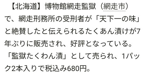 ■どんな記事でしたか?: 監獄たくあん再発売