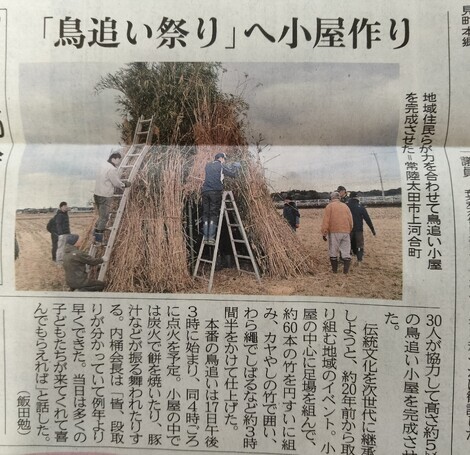 どんと焼き、左義長、地元では「鳥追い祭り」なんてのも。すぐ近くの地域ですが今朝の朝刊で初めて知りました。