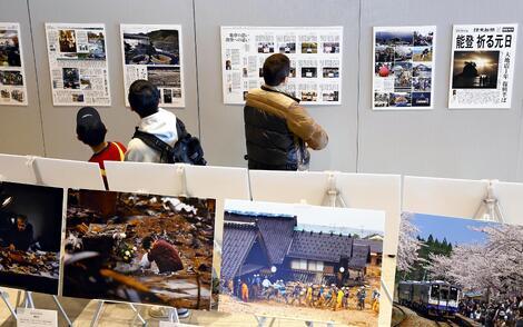 能登半島地震と奥能登豪雨の被害や復興の歩みを紹介する「能登地震報道写真展」が、金沢市の石川県立図書館で開かれています。被災地の実態を多くの人に知ってもらい、風化防止につなげようと、石川県と読売新聞社が企画しました。自衛隊による救助活動や、第3セクター「のと鉄道」の運行再開を喜ぶ住民の様子など、読売新聞のカメラマンが撮影した21枚の写真を展示しています。また、地震が起きた直後や、地震発生から1年の節目に発行された新聞紙面を再現したパネルも掲示しています。