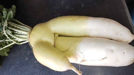 休日だったので、畑の大根を収穫!3股の大根もありました。キムチ、酢の物にしました✨