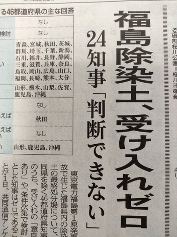 ■どんな記事でしたか?: 福島原発除染土、受け入れゼロ