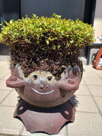 母が、自身で育てている植物の葉をカットしていました。刈った後に『人の顔みたいになったから見て』と。刈り上げがイイね!と返し、可愛いかったのでシャッターをきりました。