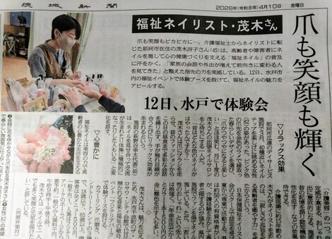 ■どんな記事?: 介護福祉士からネイリストに転身された茂木冴子さんは「福祉ネイル」の可能性を