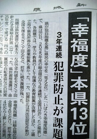 ■どんな記事でしたか?: 幸福度、わが茨城が13位!?