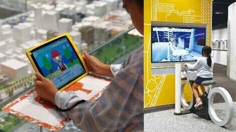 自転車に乗って新聞配達を体験できるシミュレーション型のゲームや、タブレット端末を手に過去の横浜にタイムスリップする取材体験ゲームなど、新聞について楽しみにながら学べる展示が充実しているんだ。