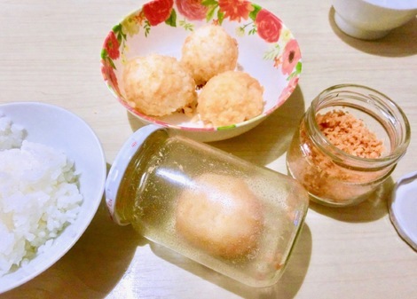 手を汚さず簡単に小さなライスボールを作りました♪(^▽^)