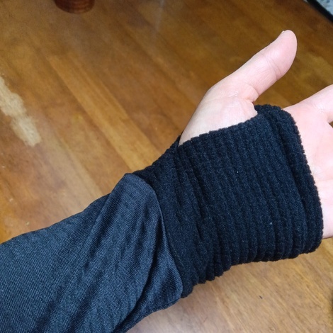 仕事帰りの夕方には 手首の部分は 通常通り出して 可愛く暖かくして帰宅しました。