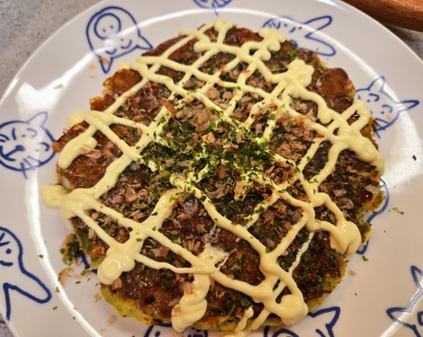 絹豆腐&おからパウダー&山芋も加えてヘルシーなお好み焼きです🎐🐭