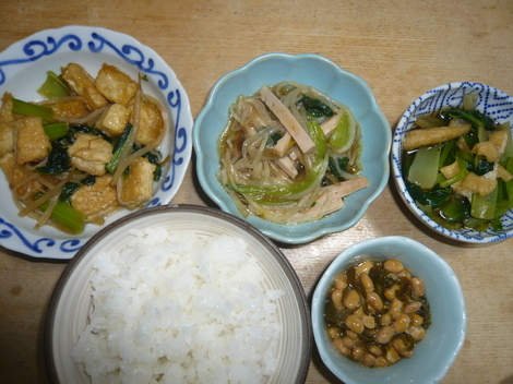 、めかぶ納豆、小松菜油揚げ煮びたし
