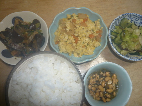 、めかぶ納豆、昆布一夜漬け、ご飯