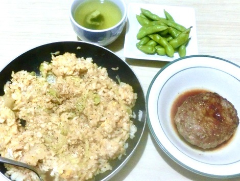 炒飯、ハンバーグ、枝豆を食べました。